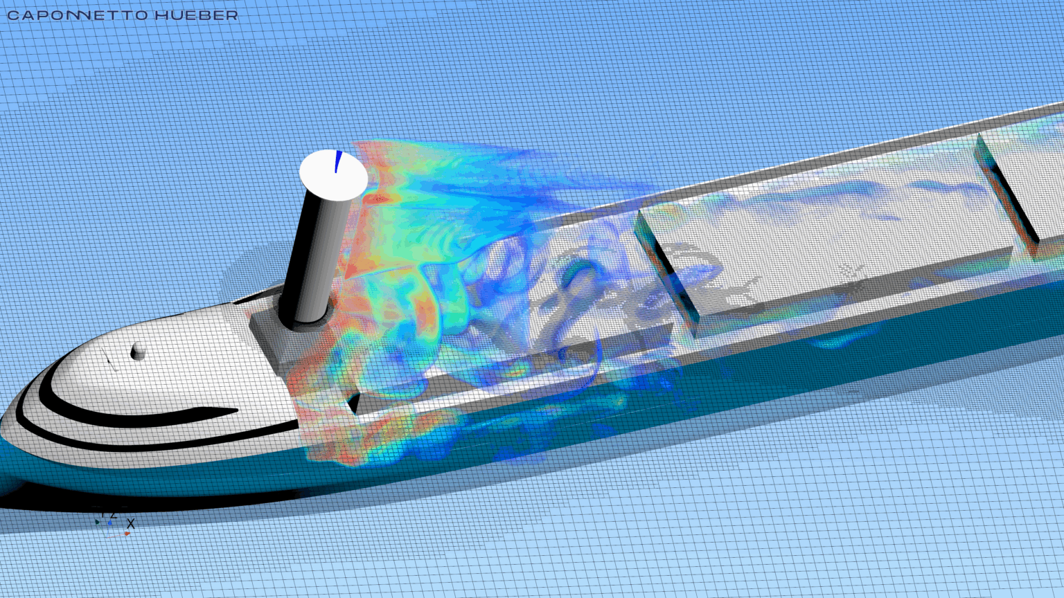 Drawing on our experience from the America’s Cup, we approached the problem from a high-fidelity perspective, focusing on accurately capturing aero-hydrodynamic flow behavior and interactions effects. Our methodology is built around full-scale 3D RANS CFD simulations of the complete ship–system configuration and smart DOE sampling strategies.