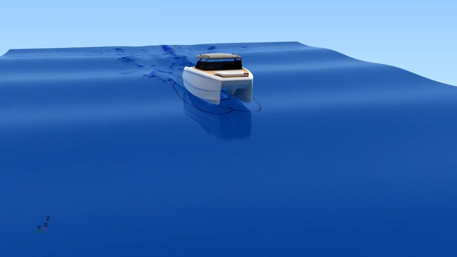 Following the successful collaboration on the BGH-HSV project, the Bluegame shipyard decided to team up with CH again to develop a foil-assisted multihull capable of drastically reducing fuel consumption while simultaneously increasing comfort at sea. The synergy with Caponnetto-Hueber has resulted in what is perhaps the flagship boat of 2025 in its category.