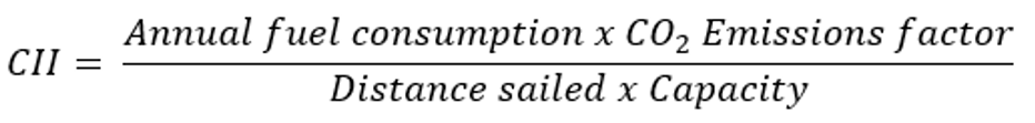 The result is expressed in grams of CO₂ per nautical mile per ton of cargo (gCO₂/nm·ton). The formulation includes both the attained CII, which is calculated annually based on the vessel’s performance, and required CII, a benchmark that ships must meet, which becomes more stringent over time due to mandated reduction factors. These rating boundaries vary based on ship type, gross tonnage, and operational profiles