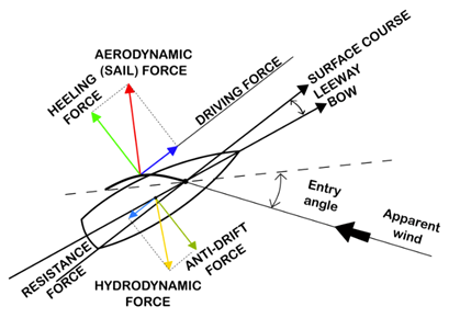 In traditional sailing, sails are adjusted to exploit the incoming wind, generating forward thrust. Modern Wind-Assisted Ship Propulsion (WASP) devices rely on the same aerodynamic fundamentals but use engineered geometries: rigid wings, flettner rotors, suction sails or kites that are optimized for performance, durability, and integration with large commercial vessels. The fundamental aerodynamic relationship is: