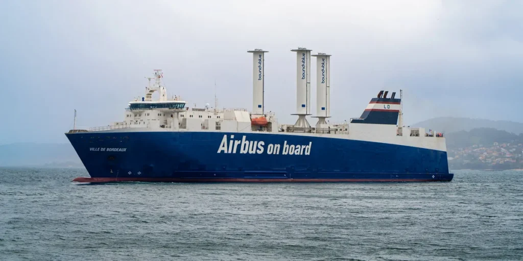 The resulting high aerodynamic efficiency enables strong upwind capability and steady performance across a wide range of wind angles. Power needs are minimal, typically a few kilowatts per unit, limited to automatic control and positioning systems. Commercial sizes vary from ~9 m to 40 m in height, depending on vessel size and route.